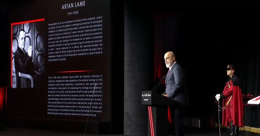 “Me propozim të kancelarisë, do t’i dorëzojmë sonte dy medaljonet e para të 100-vjetorit të urdhrit të Skenderbeut, familjeve të Artan Lames dhe Filip Rrumbullakut. Sot Republika shpreh mirënjohjen e saj ndaj këtyre dy shërbestarëve,” u shpreh Rama gjatë fjalës së tij, duke nënvizuar rolin e rëndësishëm që këta individë kanë luajtur në historinë e vendit.