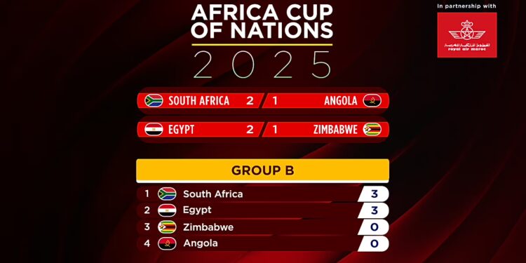 Ndërkohë, në Marrakeç, nisi gjithashtu grupi B, ku Afrika e Jugut u përball me Angolën. Afrika e Jugut e nisi me fitore, duke fituar 2-1 falë golave të Oswin Appollis dhe Lyle Foster, pas një barazimi përpara pauzës. Në ndeshjen tjetër, Egjipti fitoi po ashtu 2-1 ndaj Zimbabve, duke filluar me një prapambetje përmes golave të Omar Marmoush dhe Mohamed Salah, i cili shënoi në minutat shtesë.