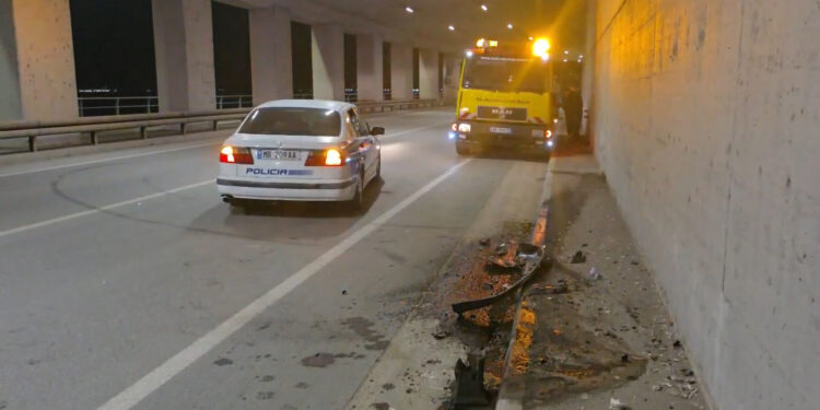 Si pasojë, automjeti ka dalë nga rruga dhe është përplasur me murin anësor të tunelit.