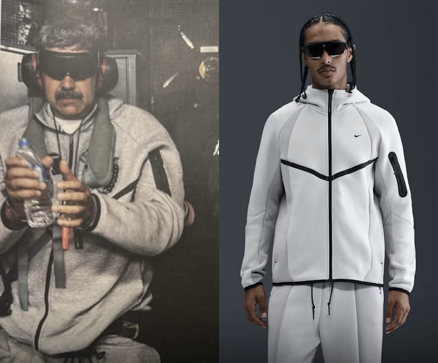 Imazhi u përhap me shpejtësi në rrjet, jo vetëm për shkak të pozicionit poshtërues të Maduro-s, por edhe për veshjen e tij: një kostum sportiv gri Nike Tech. Pas postimit, kërkimet në Google për “Nike Tech” u rritën ndjeshëm mëngjesin e 3 janarit, sipas Google Trends.