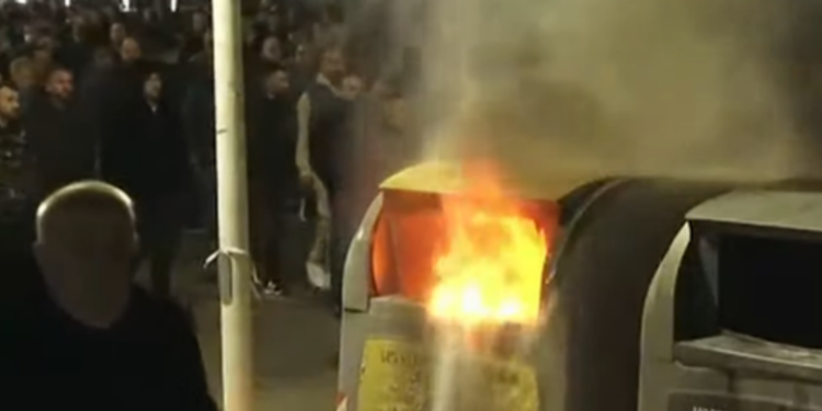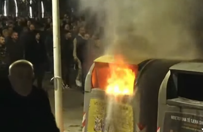 Protestuesit po hedhin boma molotov në kazanët e mbeturinave. Është bllokuar lëvizja e mjeteve në Rrugën e Elbasanit.