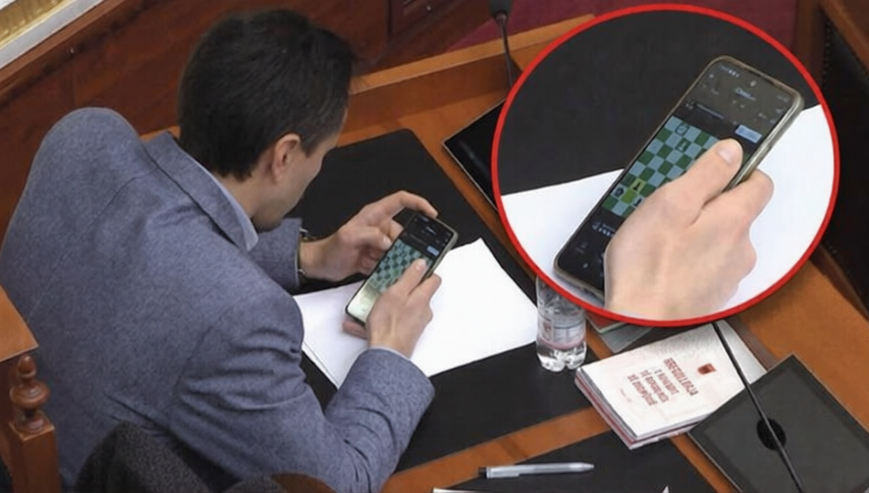 Deputeti i partisë Lëvizja Bashkë Redi Muçi është fotografuar teksa luante shah ndërkohë që në foltore po mbante fjalën deputetja e PD Ledina Allolli, e cila ngriti si shqetësim bllokimin e qarkullimit drejt juglindjes për shkak të rrugës së shembur.