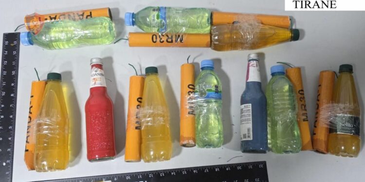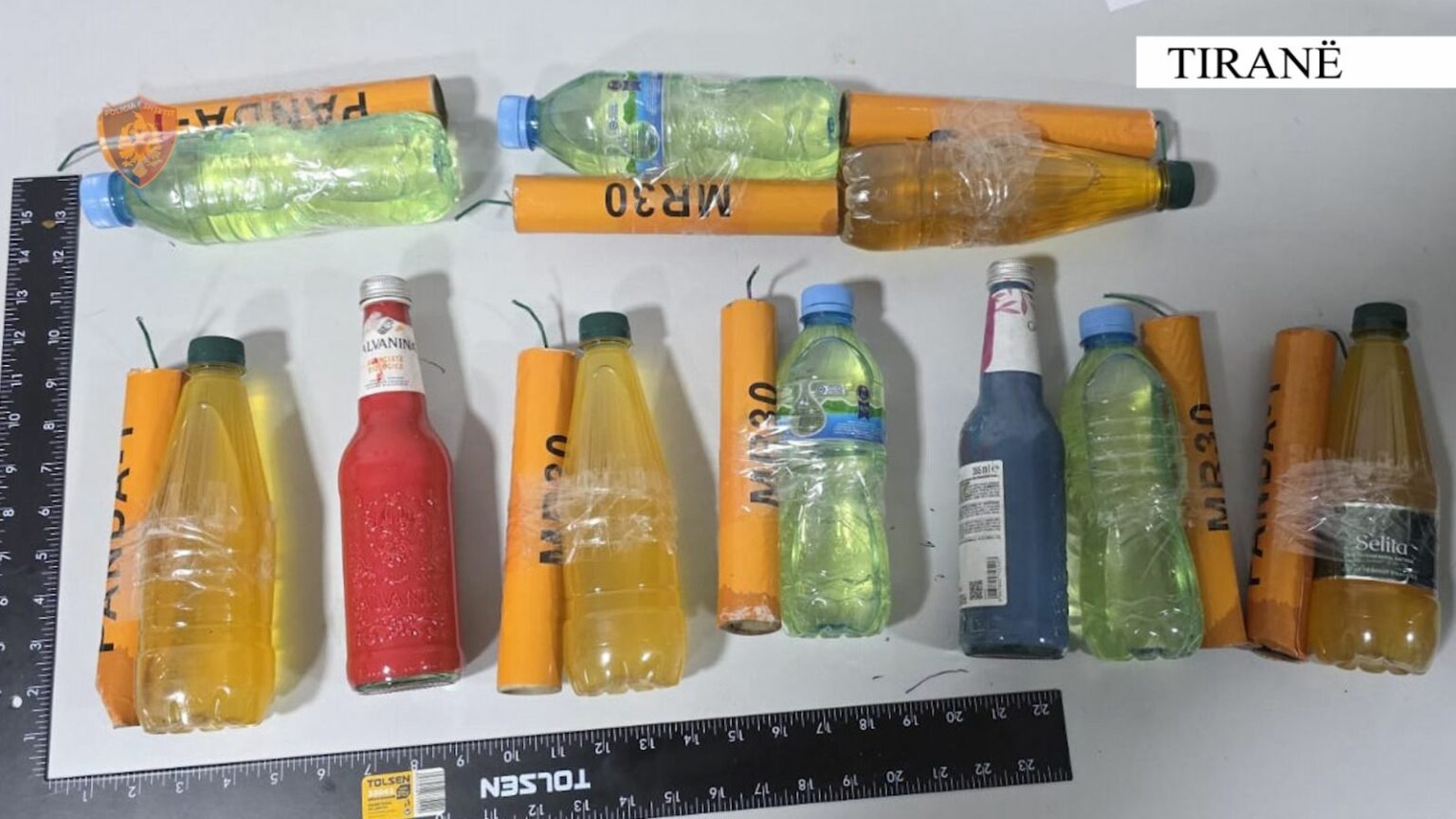 Në cilësinë e provës materiale janë sekuestruar 22 molotovë të pashpërthyer dhe 3 shishe me lëndë të dyshuar djegëse benzinë, që janë gjetur nga shërbimet e Policisë, afër Kuvendit.