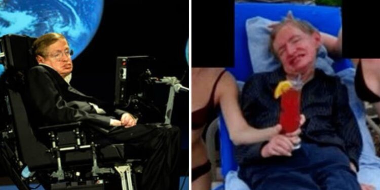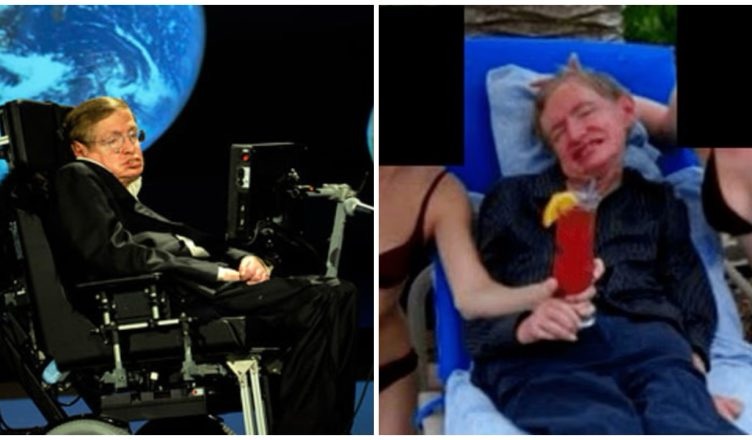 Në një nga fotot shfaqet fizikani i njohur britanik Stephen Hawking, i ulur mes dy vajzave të reja me bikini që mbajnë pije në duar. Nuk është konfirmuar vendi ku është realizuar fotografia, por disa raportime sugjerojnë se mund të jetë bërë në ishullin privat Little Saint James në Ishujt e Virgjër Amerikanë, pronë e Epstein.