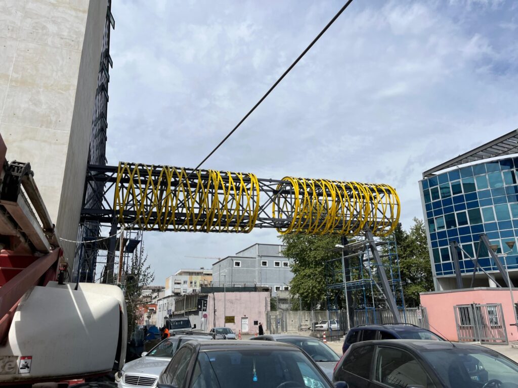 Siç shihet edhe nga pamjet, punimet për urën janë ende në fazë ndërtimi dhe objekti kalon mbi rrugën e automjeteve.
