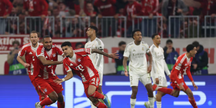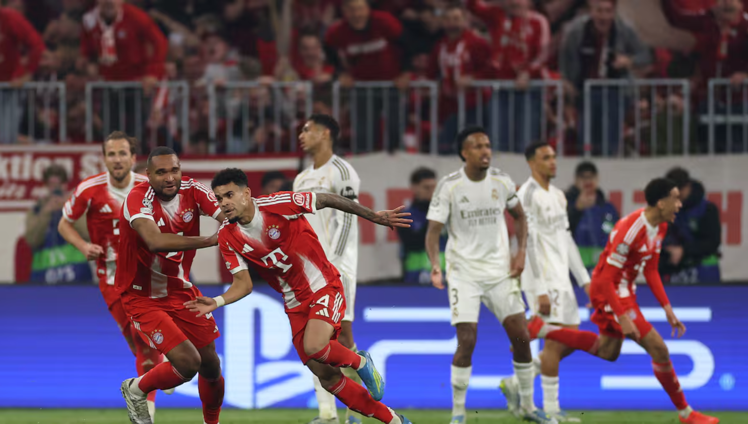 Ndeshja nisi në mënyrë të çmendur. Real Madrid barazoi shumë shpejt përballjen pas një gafe të Neuer, të cilën Arda Güler e shfrytëzoi me një goditje të saktë nga larg. Por Bayern reagoi menjëherë dhe riktheu baraspeshën pas një këndi, ku Lunin dhe mbrojtja madrilene dështuan të kontrollonin situatën.