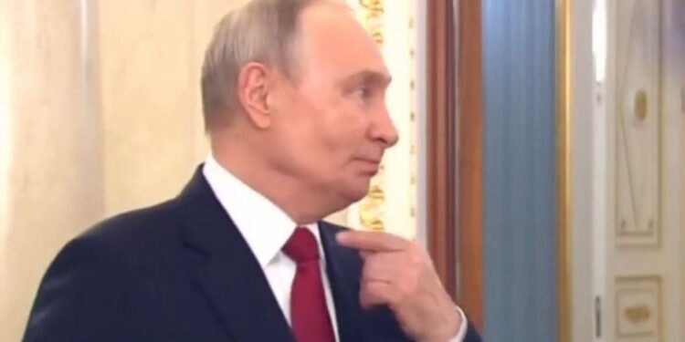 “E dini, më lejoni ta them përsëri, sepse… fyti im është pak i gërvishtur. Po, është pak i gërvishtur sa nuk fillova të kollitem. Po flas shumë sot”, dëgjohet të thotë presidenti rus në pamjet që qarkulluan në internet.