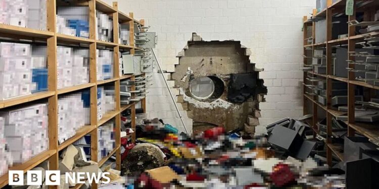 Disa hajdutë përdorën një drill të madh për të thyer një kasafortë në një degë banke në qytetin Gelsenkirchen të Gjermanisë perëndimore, duke vjedhur një shumicë prej rreth 30 milionë euro (26 milionë £; 35 milionë $) në para dhe vlera, sipas policisë. Një zëdhënës i policisë e krahasoi këtë vjedhje me filmin e njohur “Ocean’s Eleven”, duke e cilësuar si “shumë profesionalisht të ekzekutuar”.