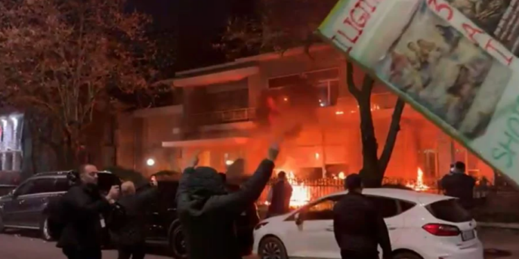 Ish-vila e Enver Hoxhës në flakë, protestuesit e PD hedhin ‘breshëri’ molotovësh dhe fishekëzjarrësh