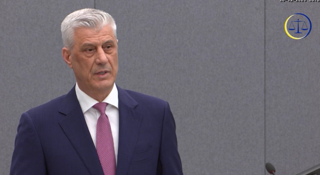 Në deklaratën e tij para trupit gjykues, Thaçi rikujtoi se ishte ndjekur dhe dënuar në mungesë nga regjimi i Sllobodan Millosheviçit, me akuzën për shkelje të ligjeve që ai i cilësoi si diskriminuese. Sipas tij, i njëjti regjim kishte dënuar në mungesë edhe liderë perëndimorë si Bill Clinton, Madeleine Albright, Tony Blair, Gerhard Schröder, Jacques Chirac dhe Javier Solana.