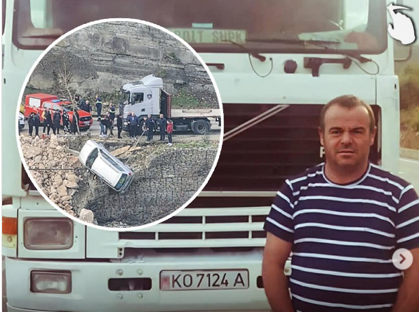 Kamionisti Jetnor Merko ka lidhur një litar të fortë në kamionin e tij dhe ka mbajtur pezull makinën e të rinjve deri sa kanë ardhur zjarrfikësit dhe kanë ndërhyrë për t’i shpëtuar.