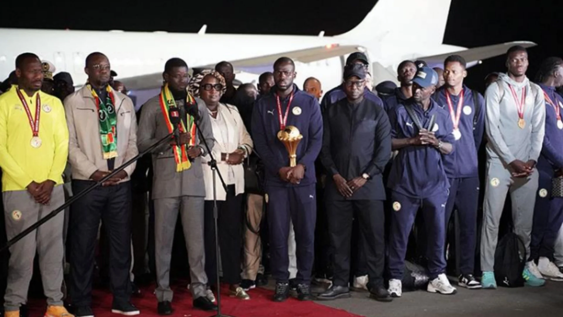 Kombëtarja senegaleze e futbollit u rikthye në Dakar pas një finale dramatike të Kupës së Afrikës ndaj Marokut, duke triumfuar pas një ndeshjeje të tensionuar që përfshiu dhe protesta për një penallti. Ikonat e futbollit senegalez patën një pritje të ngrohtë në aeroport, ku presidenti Bassirou Diomaye Faye u shpreh me elozhe për skuadrën.