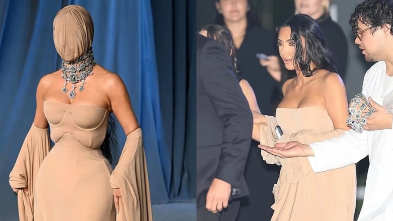 Kim Kardashian ka tërhequr vëmendjen e të gjithëve në Galën e Muzeut të Akademisë 2025, duke u shfaqur me një pamje të pazakontë dhe misterioze. Ylli 44-vjeçar mbërriti me një maskë që mbulonte të gjithë fytyrën e saj, duke krijuar një imazh intrigues që menjëherë u bë temë diskutimi gjatë mbrëmjes. Ajo kishte veshur një fustan të ngushtë Maison Margiela në ngjyrë nudo, me një korse dramatike dhe mëngë që krijonin një efekt unik.