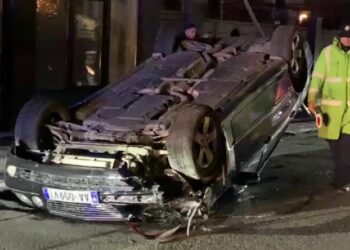 Aksident në Lezhë, “Benzi” përplaset me shtyllën e ndriçimit dhe përmbyset në rrugë