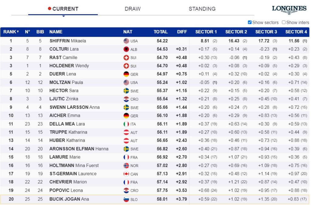 Garë fantastike nga Lara, e cila vijon të mrekullojë këtë vit me flamurin kuqezi. Një javë më parë në Levi të Finlandës ajo ia doli të ngjitej në podium si e dyta, pas Shiffrin, me të cilën po duelon edhe sot.