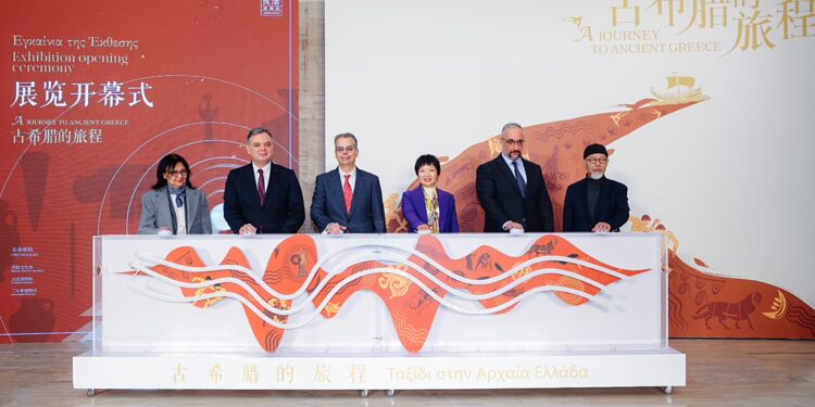 Ceremonia e hapjes ishte e pranishme nga Ambasadori i Greqisë në Kinë, Dr. Eugenios Kalpyris, një delegacion nga Ministria e Kulturës e Greqisë i udhëhequr nga Sekretari i Përgjithshëm Georgios Didaskalos, si dhe zyrtarë të lartë nga qeveria dhe kultura kineze. Gjatë ceremonisë, Ambasadori grek theksoi simbolizmin e veçantë të ekspozitës, duke e përshkruar atë si një kanale të gjallë komunikimi mes dy civilizimeve të lashta. Ai gjithashtu theksoi rëndësinë e pasurisë kulturore greke, e cila është themeli i civilizimeve europiane dhe globale.