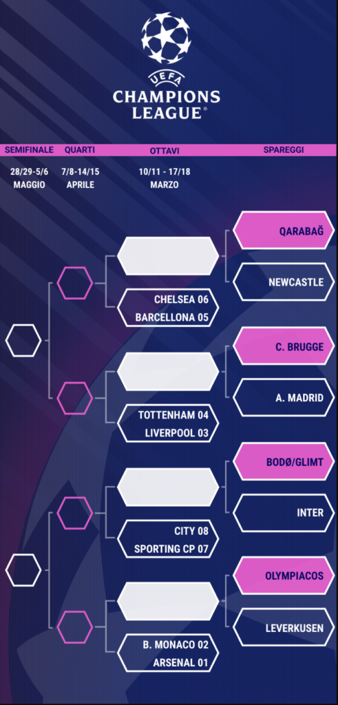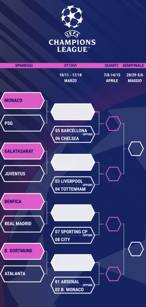 Edhe Atalanta ka një përballje të ndërlikuar në play-off kundër Borussia Dortmundit; më pas, në 1/16, do ta prisnin Arsenali ose Bayern Munichu. Një short tjetër, i planifikuar për të premten, më 27 shkurt, do të përcaktojë çiftet e fazës së 1/16-ave.