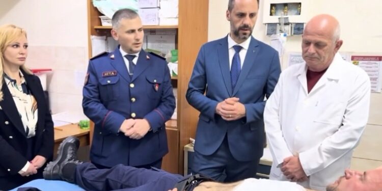 Ministri i Punëve të Brendshme, Besfort Lamallari, vizitoi në Spitalin e Traumës dhe në QSUT, 5 efektivë të Policisë së Shtetit të lënduar gjatë protestës së opozitës.