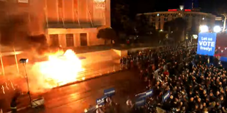 Nga ana tjetër, policia ka shoqëruar tre protestues të cilët dyshohet se kanë hedhur molotov drejt ndërtesës qeveritare.
