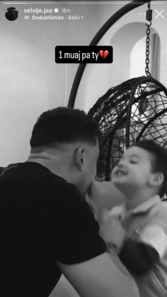 Përmes një postimi në InstaStory, ajo publikoi një video ku shihet këngëtarin i cili ishte duke luajtur me djali e tij ku shkruan: “Një muaj pa ty”, duke e vendosur dhe një emoji me zemër të thyer.
