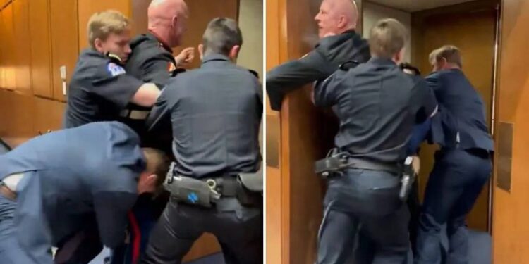 Ndërkohë që mbahej pas derës së sallës së seancës, disa persona në sallë reaguan të shqetësuar, duke pretenduar se dora e tij mund të ishte dëmtuar gjatë përplasjes me policinë dhe senatorin.