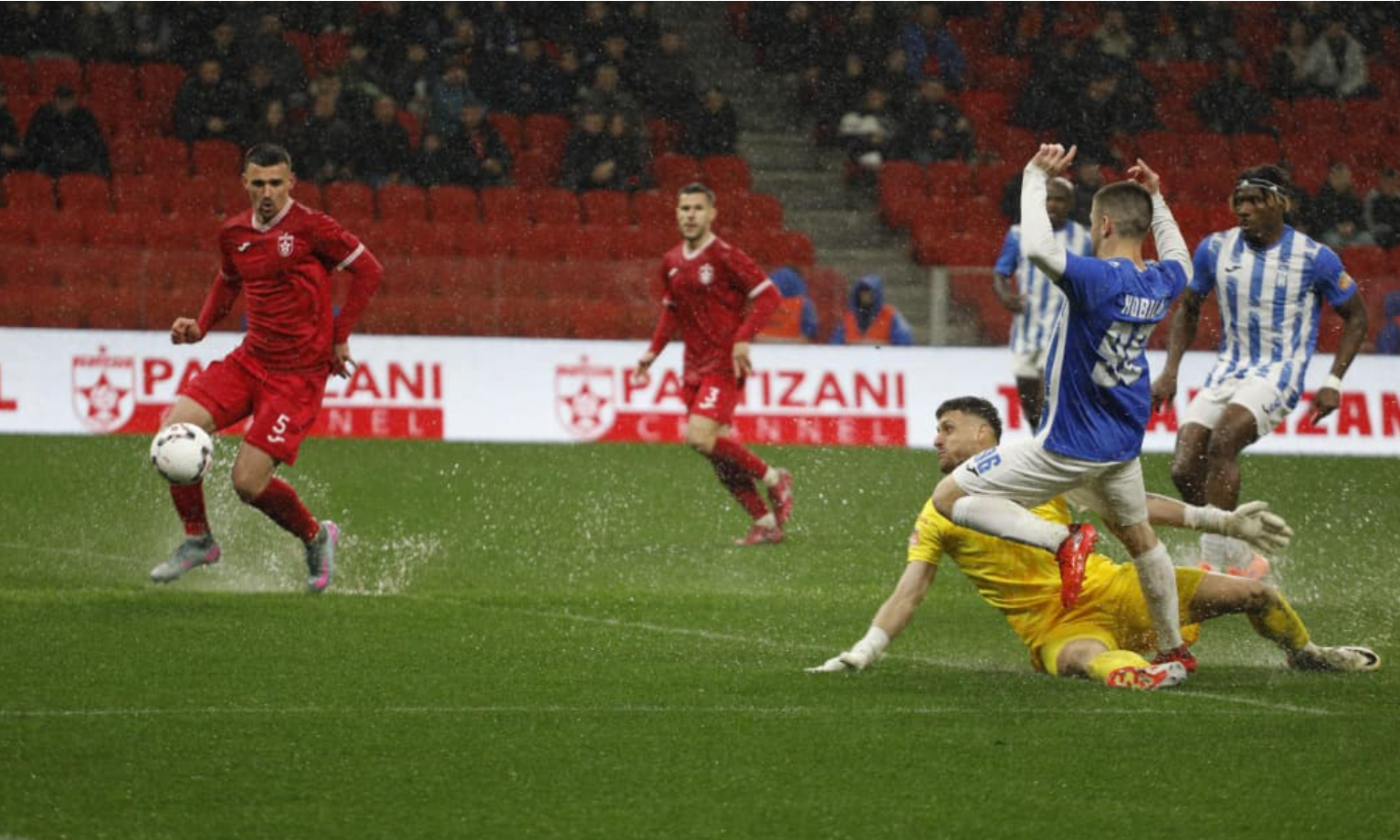 Goli i parë erdhi në minutën e 26’ me Sidibe, ndërsa vetëm 11 minuta më pas, në 37’, Isgandarli dyfishoi shifrat dhe i dha Partizanit kontrollin e plotë të derbit. Tirana u përpoq të reagonte, por nuk arriti të gjente rrugën e golit dhe u ndal nga organizimi i mirë i Partizanit.
