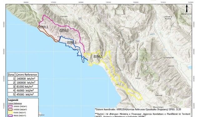 Disa zona bregdetare të vendit që po njohin zhvillim për ndërtesat rezidenciale, janë ndarë në disa zona kadastrale me çmime të ndryshme reference të përfshira edhe në zona urbane dhe rurale.