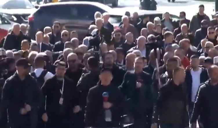 Berisha është i shoqëruar nga mbështetës të tij dhe sekretari i përgjithshëm Flamur Noka dhe deputetë të PD.