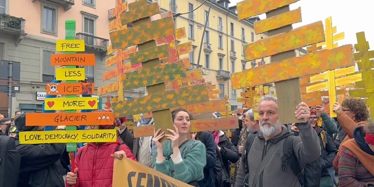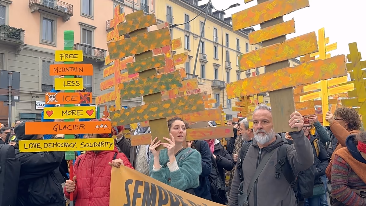 Protestuesit marshuan përmes qytetit, duke kaluar pranë Fshatit Olimpik të sapohapur. Edhe pse fishkëllimat dhe bombat e tymit shënuan protestën, ajo mbeti në thelb paqësore. Disa nga transparencat që u mbajtën lexonin “ICE out”, gjithashtu kritikuan qeverinë e Giorgia Melonit dhe kryebashkiakun e Milanit, Beppe Sala.