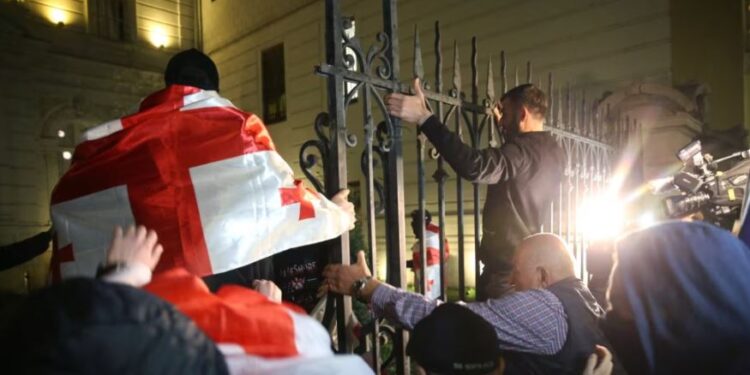 Policia e Gjeorgjisë ka përdorur të shtunën sprej piperi dhe topa uji kundër protestuesve që kanë tentuar të hyjnë në pallatin presidencial në Tbilisi.