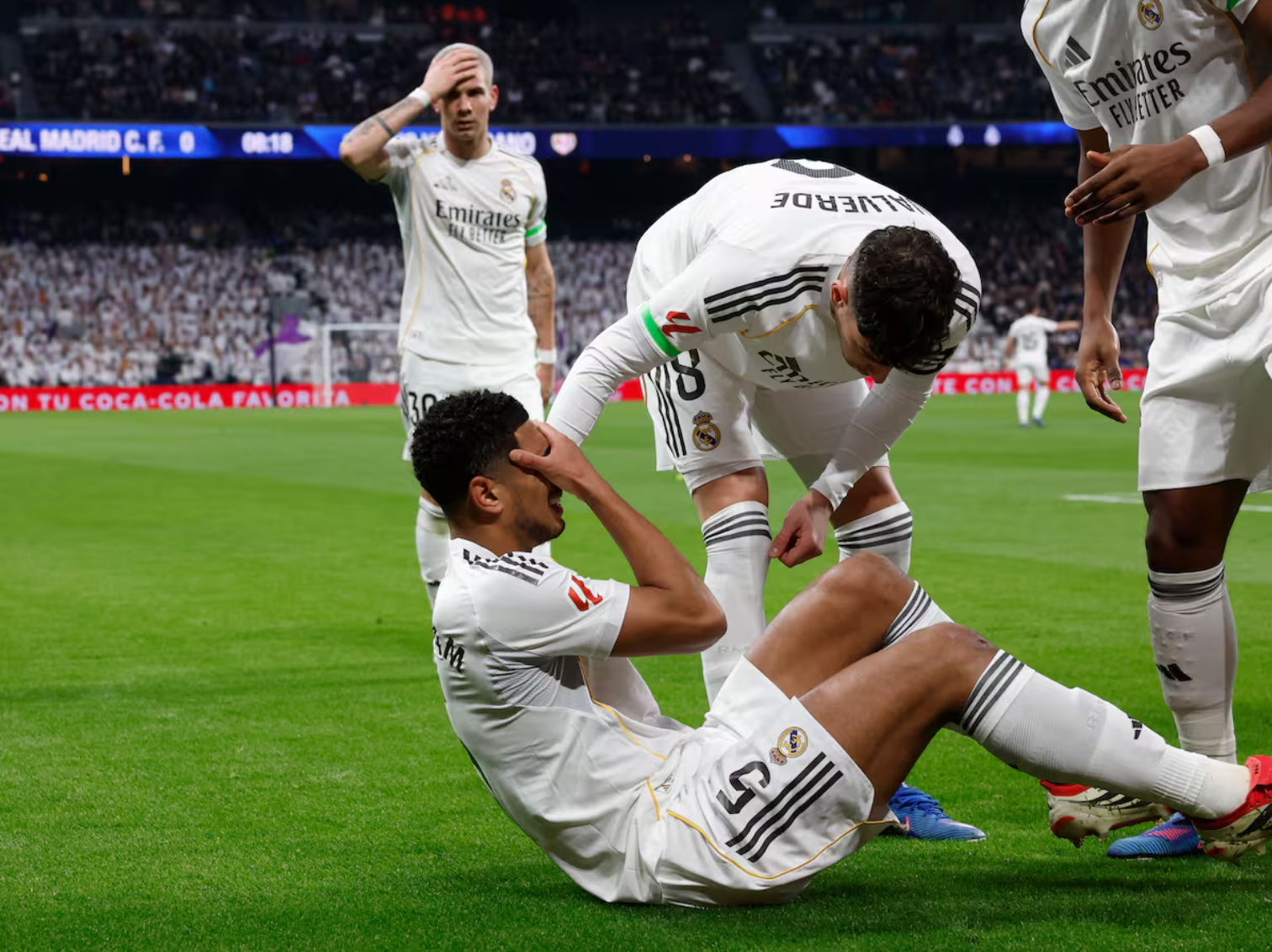 Bellingham u detyrua të largohej nga fusha që në minutat e para të ndeshjes ndaj Rayo Vallecano, duke shfaqur dhimbje të forta dhe shqetësim të dukshëm. Dëmtimi ndodhi në minutën e tetë, pas një aksioni në krahun e djathtë: pas një pasimi nga Mastantuono, ai sprintoi, por menjëherë u kap pas pjesës së pasme të kofshës. Shokët e skuadrës sinjalizuan se nuk mund të vazhdonte, ndërsa tifozët në “Santiago Bernabéu”, me përjashtim të disa fishkëllimave të izoluara, e përcollën mesfushorin me duartrokitje.