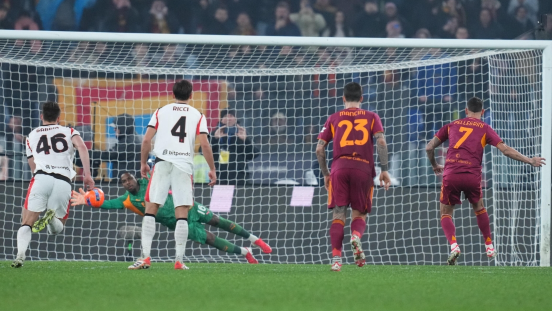 Roma reagoi dhe gjeti barazimin në minutën e 74-t, kur Pellegrini u tregua i saktë nga pika e bardhë, duke rikthyer ekuilibrin dhe duke shmangur humbjen për verdhekuqtë.