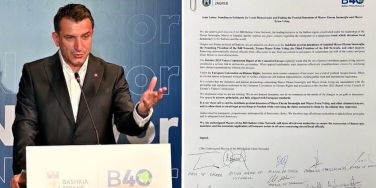 “Është e qartë se ndalimi dhe procedurat gjyqësore që lidhen me kryetarin Ekrem İmamoğlu dhe kryetarin Erion Veliaj nuk përputhen me parimet dhe standardet e sanksionuara në Konventën Evropiane për të Drejtat e Njeriut dhe të artikuluara në raportin e tetorit 2025 të Komisionit të Venecias të Këshillit të Evropës”, thuhet në letrën e anëtarëve të rrjetit B40.