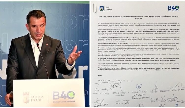 “Është e qartë se ndalimi dhe procedurat gjyqësore që lidhen me kryetarin Ekrem İmamoğlu dhe kryetarin Erion Veliaj nuk përputhen me parimet dhe standardet e sanksionuara në Konventën Evropiane për të Drejtat e Njeriut dhe të artikuluara në raportin e tetorit 2025 të Komisionit të Venecias të Këshillit të Evropës”, thuhet në letrën e anëtarëve të rrjetit B40.