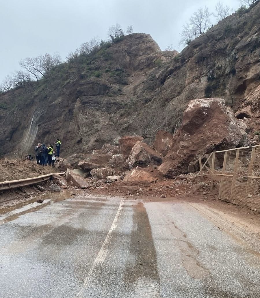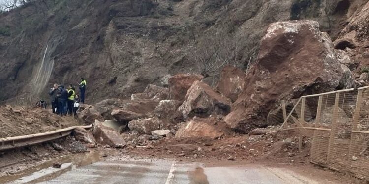 Një masiv i madh ‘dheu është shembur paraditen e sotme në aksin rrugor Prrenjas-Librazhd, në afërsi të fshatit Hotolisht.