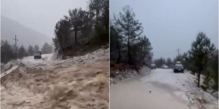 Pesë makina dhe nëntë persona mbetën të bllokuar në aksin rrugor Breg Lumi – Theth, rreth 100 metra larg urës së fshatit Gimaj, si pasojë e shembjes së një masivi inertesh shkaktuar nga reshjet e dendura të shiut.