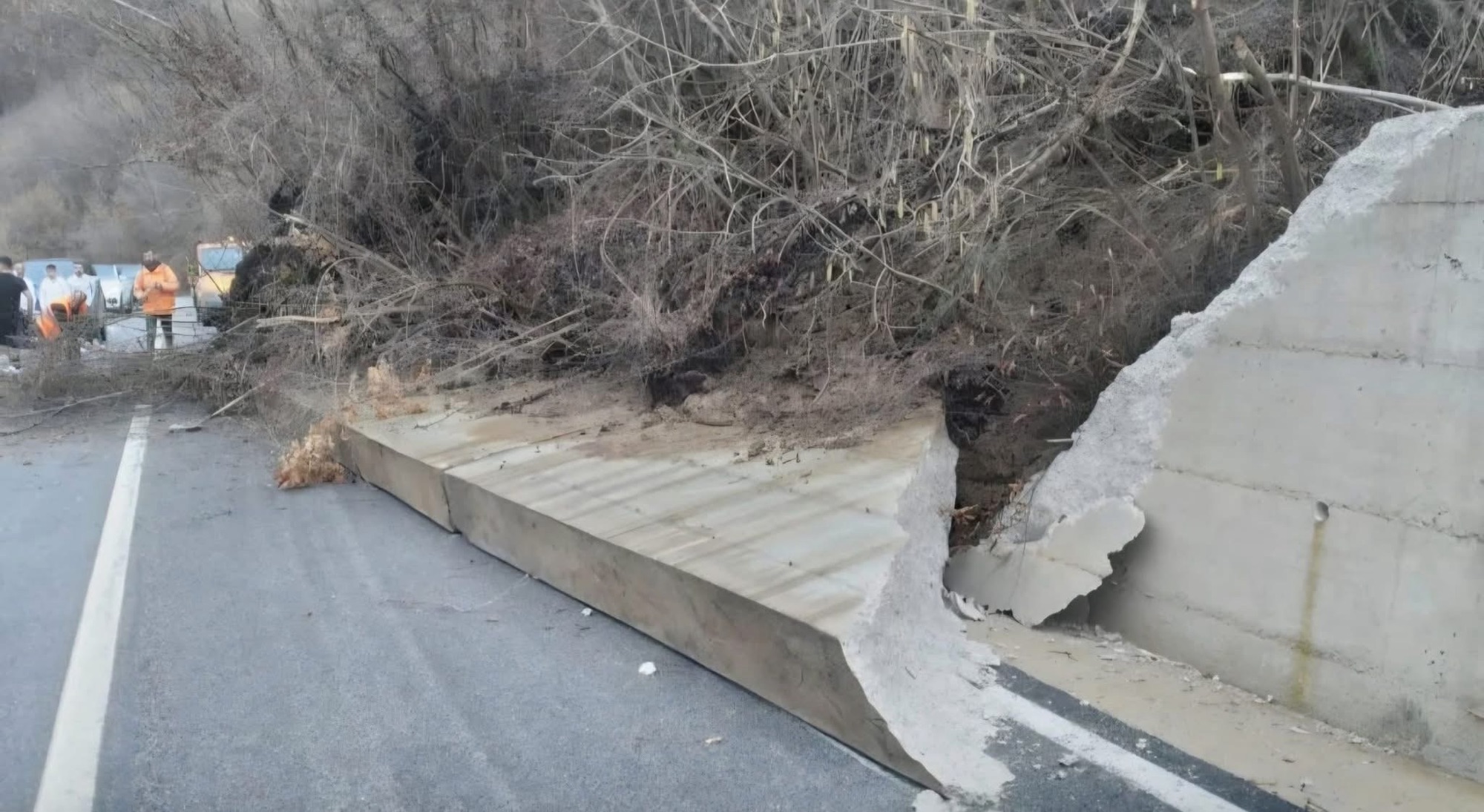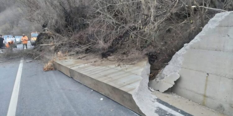 Sipas informacioneve paraprake, si pasojë e rrëshqitjes së një masivi dheu, muri pritës ka pësuar dëmtime, duke krijuar vështirësi në qarkullimin e mjeteve.