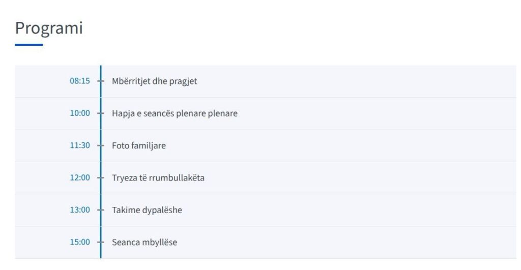 Në orën 08:15, pritet të nisë mbërritja e liderëve, në 10:00 hapja e seancës plenare, në 11:30 është parashikuar fotoja familjare, ndërsa më pas do të mbahen tryeza të rrumbullakëta dhe takime dypalëshe. Seanca përmbyllëse do të mbahet në orën 15:00.