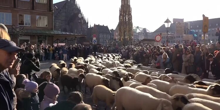 Dita e diel në Nuremberg solli një pamje të pazakontë, teksa rreth 600 dele përshkuan qendrën historike të qytetit në rrugën drejt strehës së tyre dimërore.