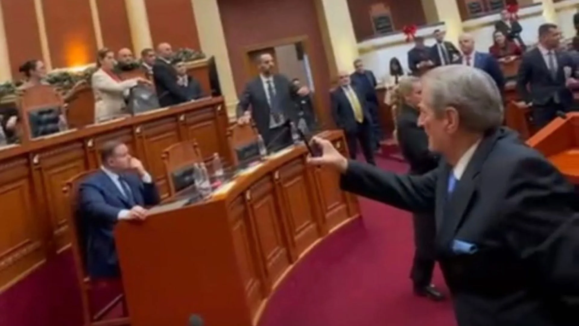 Sali Berisha, lideri i Partisë Demokratike (PD) në Shqipëri, ka marrë qendrimin e tij të fundit gjatë tensioneve në seancën plenare të Kuvendit. Gjatë përplasjeve mes deputetëve të PD-së dhe Gardës së Republikës, Berisha vendosi të dokumentojë situatën si “kameraman”. Ai fokusohej në momentet kur deputetët demokratë kishin zaptuar karriget e ministra dhe përballeshin me forcën e Gardës.