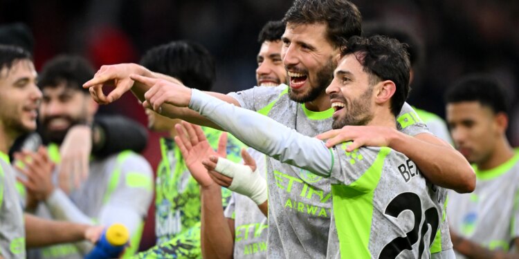 VIDEO: Momenti kur ylli i Man City, Ruben Dias, tregon për partneren e tij Maya Jama në turmën e tifozëve gjatë festimeve pas ndeshjes me Nottingham Forest, për shkak të një bashkëlojtari, Bernardo Silva.