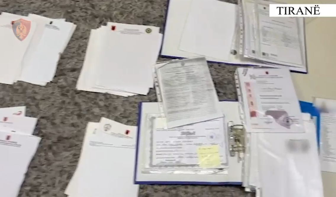 Sekuestrohen qindra dokumente të dyshuara të falsifikuara dhe sende të tjera të kundërligjshme, që shërbenin për ushtrimin e kësaj veprimtarie kriminale.