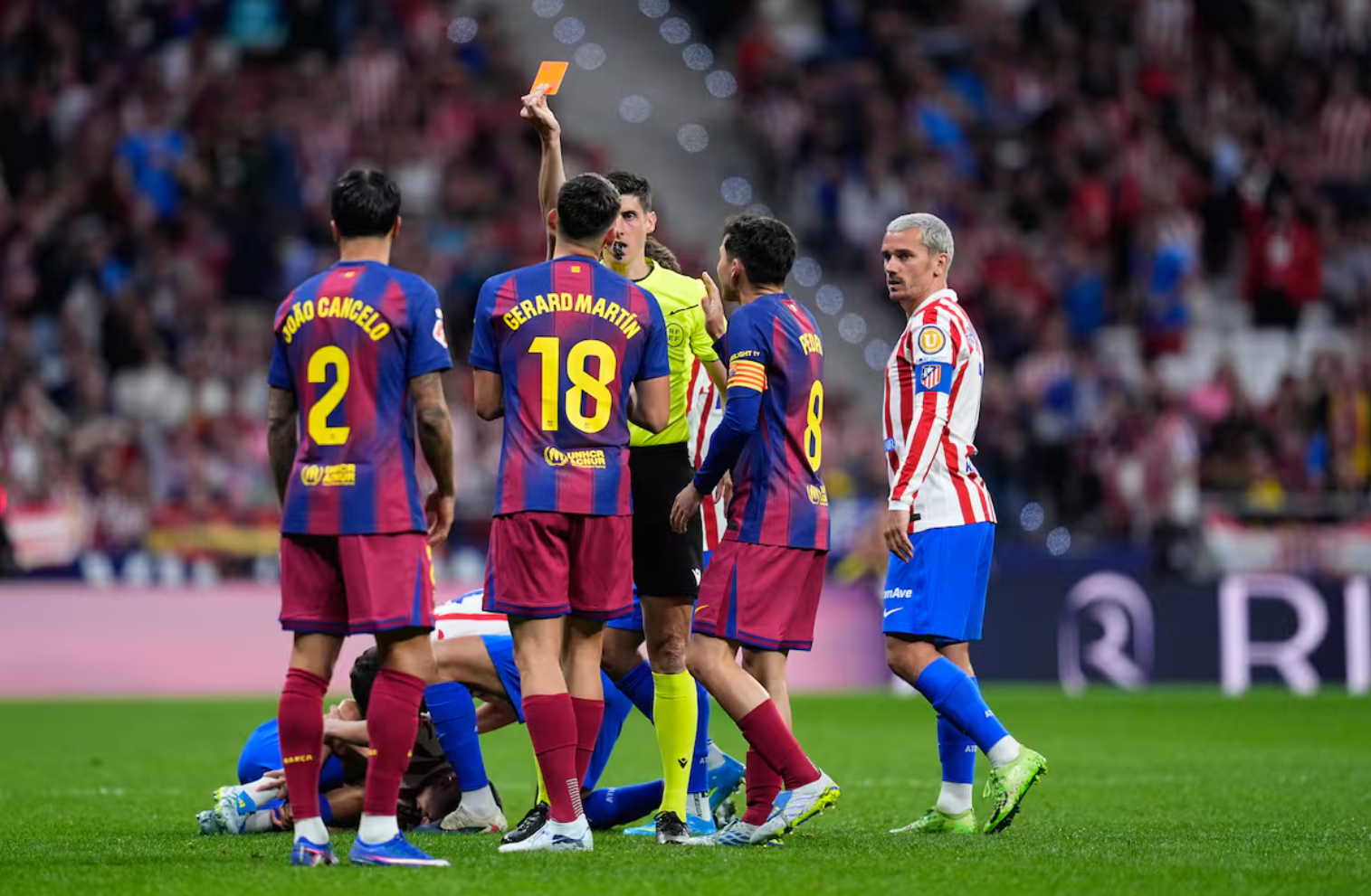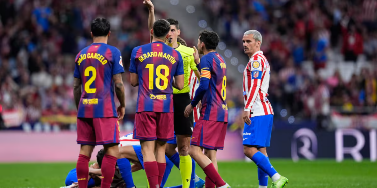 Te Atlético Madrid ka shpërthyer zemërimi pas ndeshjes ndaj Barcelona, për shkak të vendimit për të anuluar kartonin e kuq të Gerard Martín. Në fillim të pjesës së dytë, arbitri i tregoi mbrojtësit të Barça një të kuq direkt për ndërhyrjen ndaj Thiago Almada, por pas rishikimit me VAR vendimi u ndryshua.